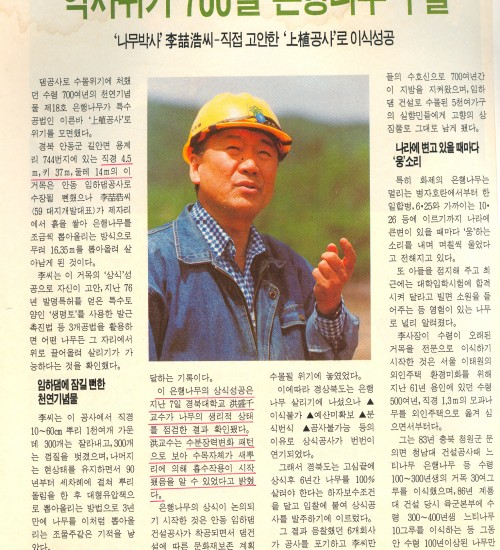 익사위기 용계리은행나무 생명토 공법으로 회생시켜....