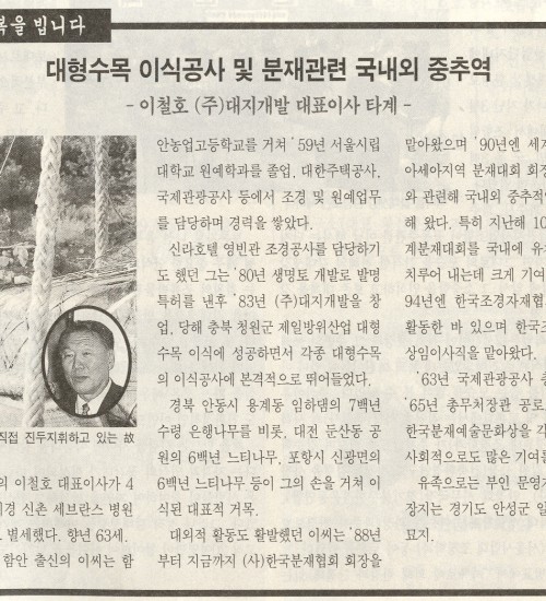 대형수목 이식공사 및 분재관련 국내외 중추역 (주)대지개발 이철…